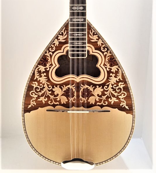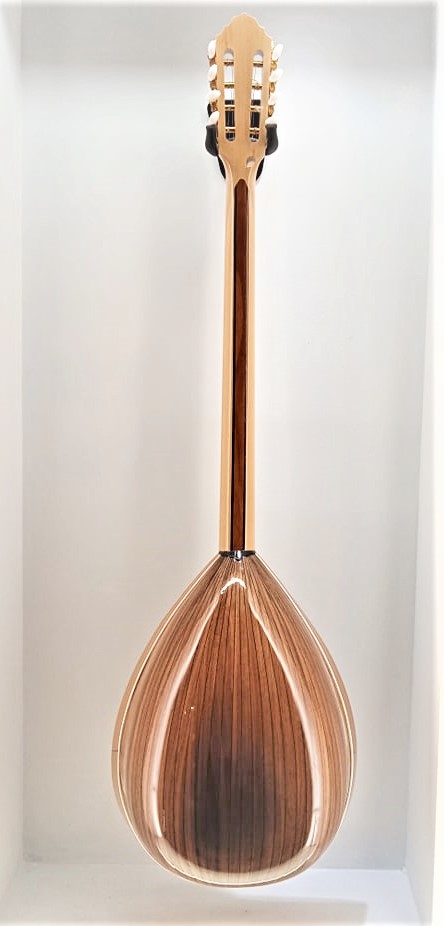 Χειροποίητο Επαγγελματικό Μπουζούκι 8-χορδο 30 Δούγες 4/4. Χρησιμοποίησα ένα συμπαγές ελβετικό έλατο AA για το καπάκι και καρυδιά για το σκάφος. Τα ένθετα είναι από ξύλο σφενδάμι και καρυδιά με παραδοσιακό σχεδιασμό. Το μανίκι είναι φτιαγμένο από 5 δούγες μασίφ ξύλο φλαμμούρι, βέγγε, οξιά και βέργα διπλής δράσης. Η ταστιέρα είναι κατασκευασμένη από ξύλο τριανταφυλλιάς με παραδοσιακά ένθετα. Τέλος, χρησιμοποίησα πολύ καλής ποιότητας επιχρυσωμένα κλειδιά 1/14 με υπέροχο σχεδιασμό. Πλούσιος ήχος με ευκολόπαικτο χαμηλό σετάρισμα.